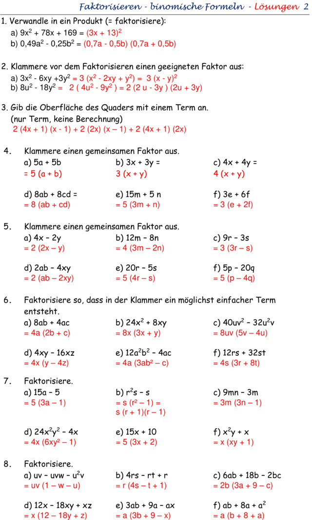 Binomische Formel Aufgaben Mit Lösungen Pdf 2024
