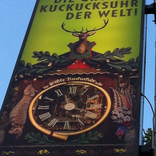 Die ehemals größte Kuckucksuhr der Welt. Anfang der 50er Jahre erhielt die Kuckucksuhr den Bezeichnungsschutz "Die größte Kuckucksuhr der Welt". Alle halbe Stunde, zwischen 8 und 20 Uhr, wenn die Kuckucksuhr schlägt, zeigt sich der Kuckuck den Besucherinnen und Besuchern.