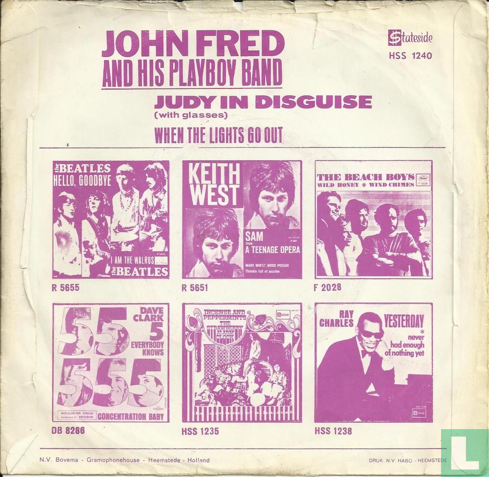 John Fred & His Playboy Band Judy In Disguise 1968 Stereo. 2:54; John Fred & his Playboys-Judy In Disguise. 2:48; John Fred and his playboy band - Judy in disguise. 2:56;. Instead of John Fred & His Playboy Band - Judy In Disguise which has "1967" as date on the label, this release has "1968" printed on the label. Made in Belgium. Barcode.