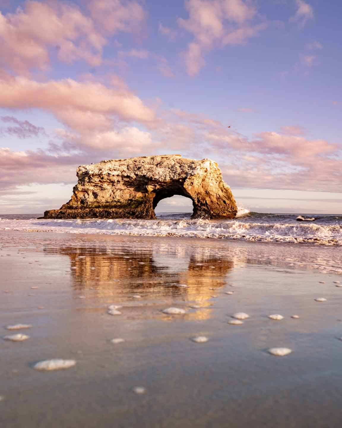 The Natural Bridges State Beach and Park is situated in Santa Cruz. The stunning beach and arch at sunset. This park is an important habitat for the overwintering monarch butterfly. The Natural Bridges Beach is less busy and breathtaking at sunset and low tide in the evening. Tide pooling is a great activity, especially for the kids at low tide.
