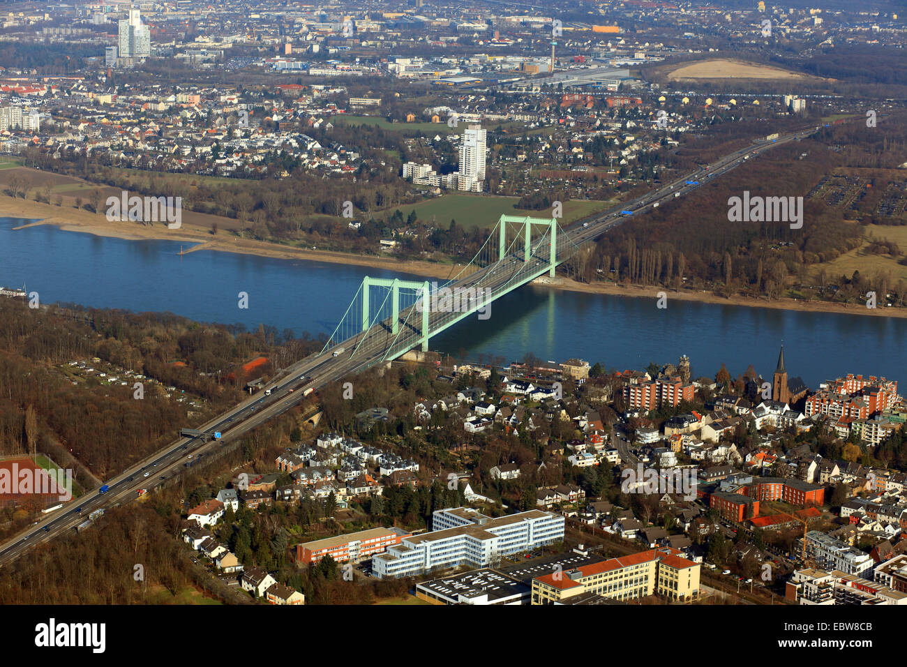Luftaufnahme von Köln Rodenkirchen Brücke, Deutschland, NordrheinWestfalen, Köln