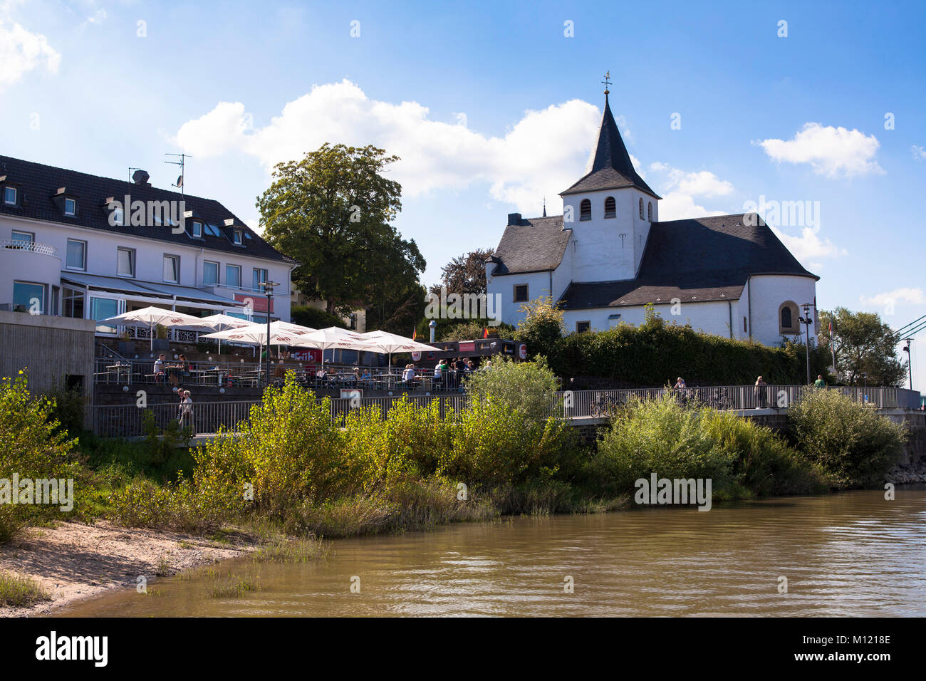 Deutschland, Köln, der Rhein und die St. Maternus Kirche im Stadtteil Rodenkirchen. Deutschland
