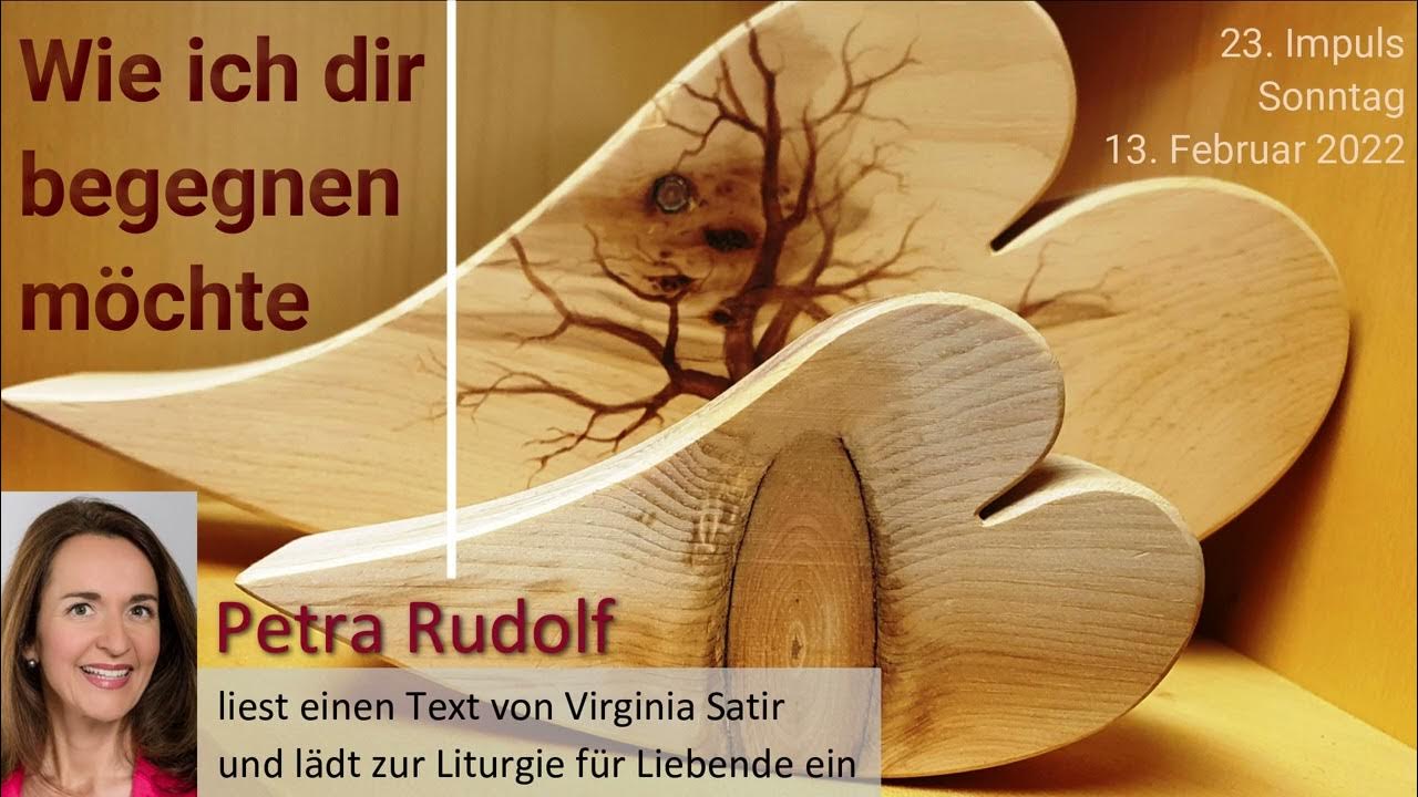 23. Impuls, Sonntag, 13. Februar 2022 Petra Rudolf liest den Text von Virginia Satir „Wie ich dir begegnen möchte" Wir, das Haus der Frauen laden morgen.